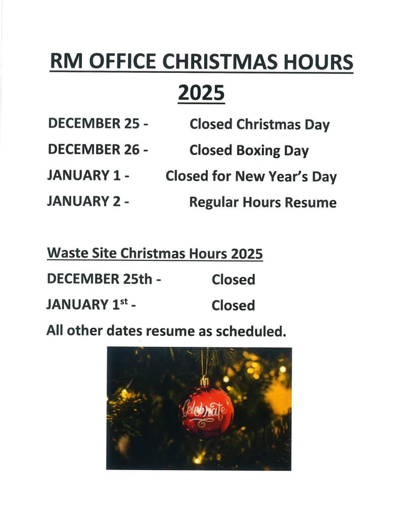 PUBLIC HEARING: Council will hold a public hearing on June 12, 2025, at 10:00am in the RM office to hear any person or group that feels negatively impacted by the proposed closures. Council will also consider